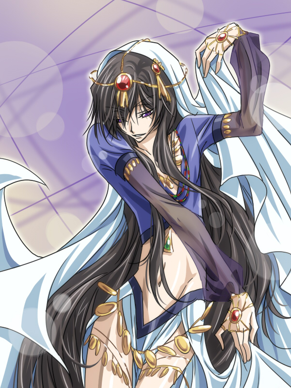 00s1boyblack haircrossdressingcrossdressing (mtf)dancergypsyjewelrylong hairlots of jewelrymale focusmidriffpurple eyessolothighhighsveilvery long hairzettai ryouiki