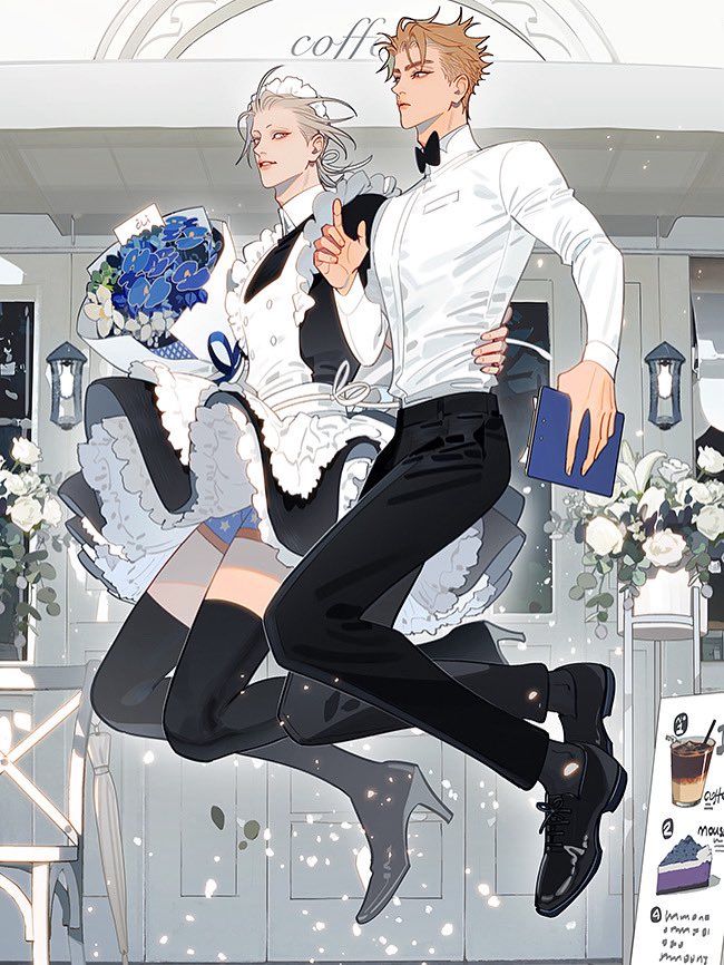 2boysapronblack bowblack bowtieblack pantsblue male swimwearbouquetbowbowtiecollared shirtcrossdressingcrossdressing (mtf)flowerfrilled apronfrillsgrey hairhand on another's waisthigh heelsholdingholding bouquetlong sleevesmaidmaid apronmaid headdressmale focusmale maidmale swimwearmale underwearmale underwear peekmultiple boysorange hairpantsshirtshort hairstar (symbol)star printthighhighsunderwearwhite apronwhite shirt