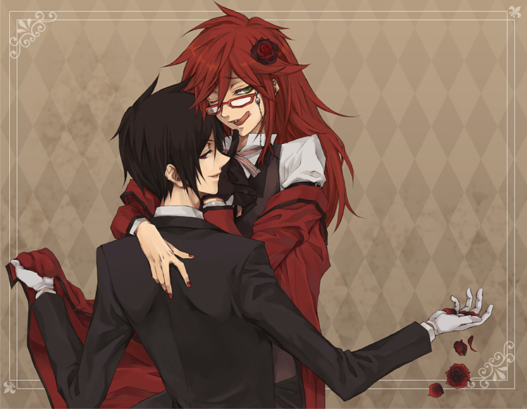00s2boysblack hairflowerformal clothesglassesgloveslong hairmale focusmultiple boysnail polishred eyesred hairrosetonguewinkyaoiyellow eyes