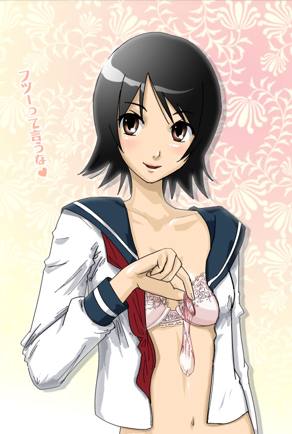 ino (magloid), saegusa mikoto, izayoi no hanayome, game cg, 1boy, 1girl, bed, blonde hair, breasts, censored, cum, ejaculation, glansjob, glasses, green eyes, green hair, handjob, hetero, large breasts, midriff, mosaic censoring, naughty face, navel, panties, penis, reach-around, topless female, two-handed handjob, underwear