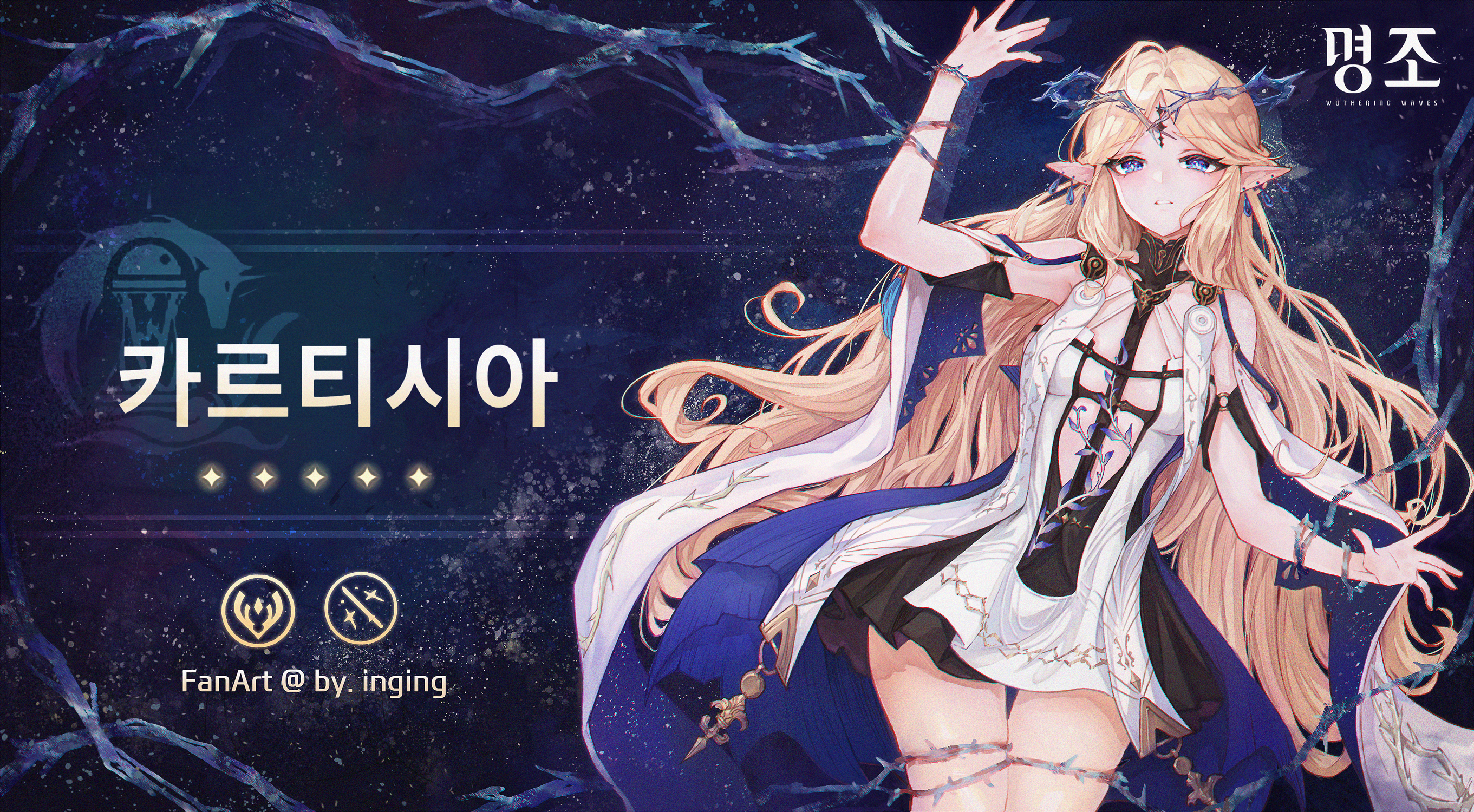 1girlarm upbare shouldersblack collarblack dressblonde hairblue eyesbreastscharacter namecollarcrown of thornsdressearringsinging823jewelrylogolong hairmultiple earringsnecklaceparted bangsparted lipspointy earssidelockssmall breastssolotabardtacet mark (wuthering waves)thighsvery long hairwhite tabard