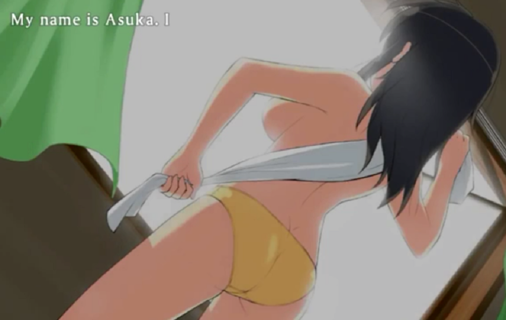 1girlblack hairbreastscurtainsdryingfrom behindnearly naked towelno branudepantiessideboobtowelunderwearunderwear onlywindowyellow panties