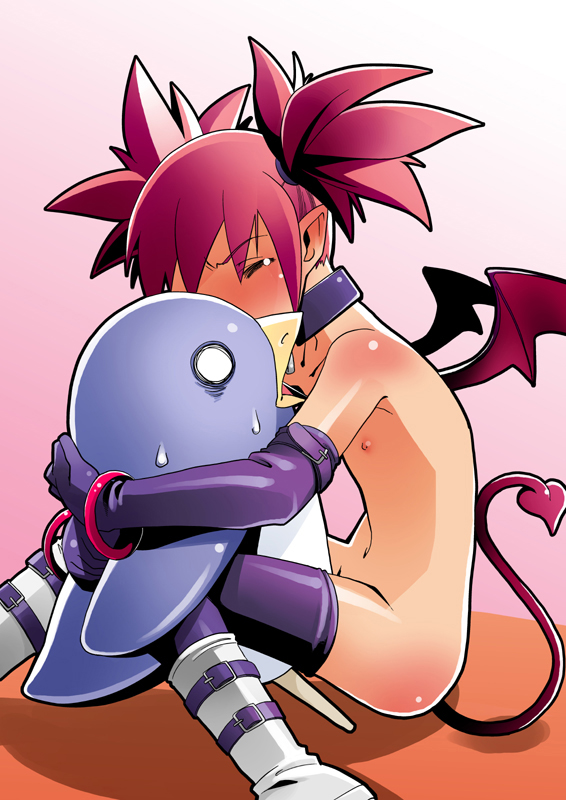 1girlbat wingsbestialityblushbraceletbreastschokerdemon girlfemale focusflat chesthuginterspeciesjewelrylolinudepointy earsred hairshort hairsolostealth sexsweattailtearsthighhighstwintailswings