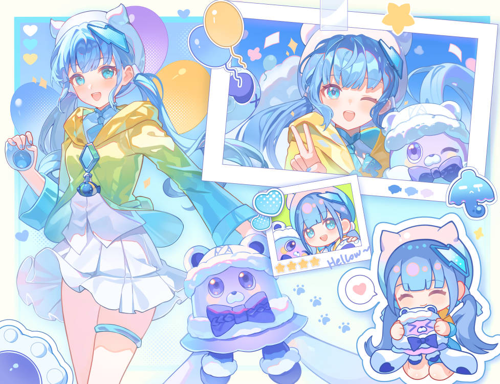 iwbitu, nyopu, original, commentary, english commentary, highres, 1girl, :d, ass, bent over, blush, breasts, brown eyes, cleavage, closed mouth, hands up, large breasts, long hair, long sleeves, looking at viewer, looking back, multiple views, navel, nightgown, no bra, no panties, open mouth, simple background, sitting, slippers, smile, thighs, white background, white hair, white nightgown, white slippers