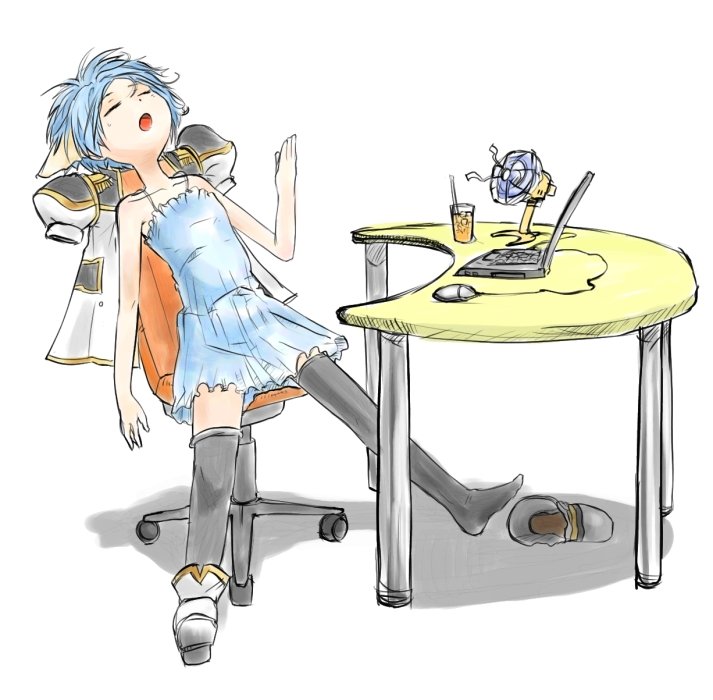 00s1girlanimal earsbare shouldersblack thighhighsblue hairblue skirtbootschairclosed eyescomputercomputer keyboardcomputer mousedressdrinkelectric fanfemale focusgoat earslaptopno left shoeopen mouthshoesshort hairsingle shoesittingskirtsleepingsolotablethighhighszettai ryouiki