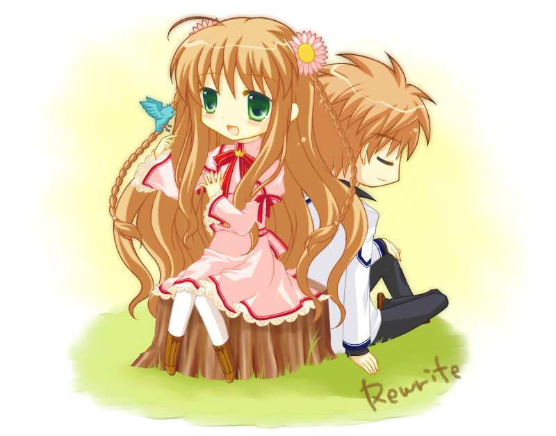 10s1boy1girlbirdbird on handbraidbrown haircopyright namedressflowergreen eyeslong hairpink dressschool uniformtwin braids