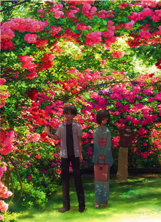 1boy2girlsblack hairdual personaflowergardenjapanese clotheskimonomultiple girlsshadeshort hairtree shade