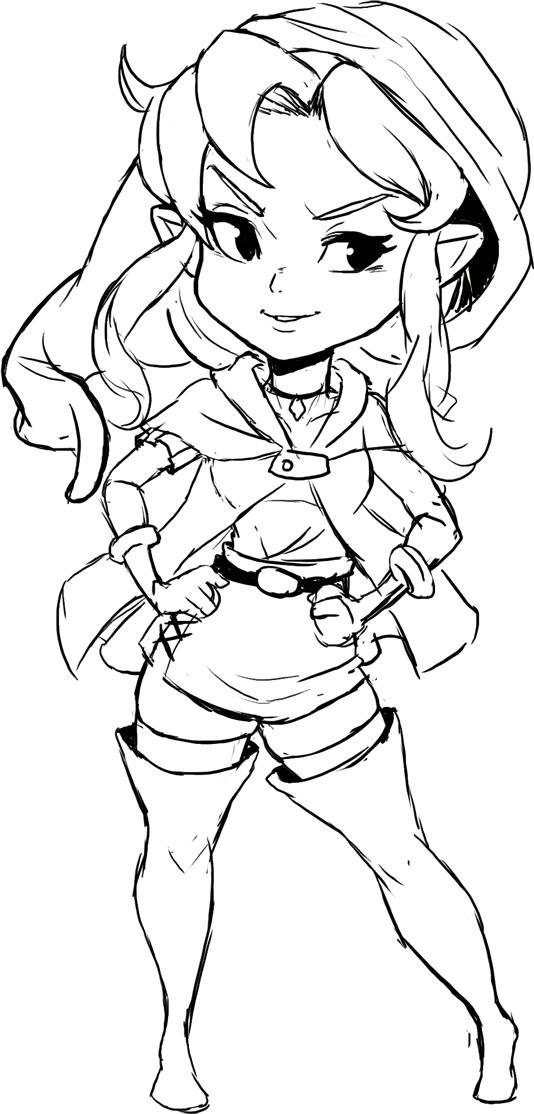 beltbootschibichokergloveshand on own hiphathoodpointy earsside slitsketchthigh bootsthighhighstunic