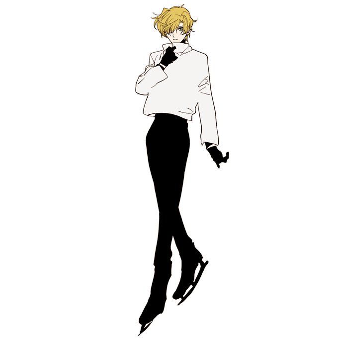 1girlblack glovesblack pantsblonde hairfull bodyglovesice skatesice skatinglooking at viewerpantsshort hairsimple backgroundskatesskatingsolostandingsweaterwhite backgroundwhite sweater