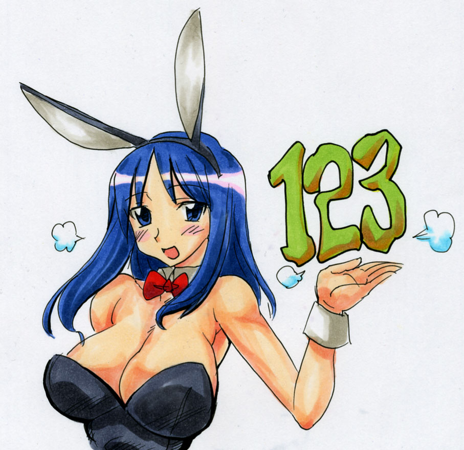 ryuuta, ryuuta (msxtr), 2girls, ass, bent over, blue hair, breasts, cleavage, cloud, day, fantasy, hair ornament, hairclip, headband, long hair, medium breasts, multiple girls, short hair, sky, squatting, sword, weapon