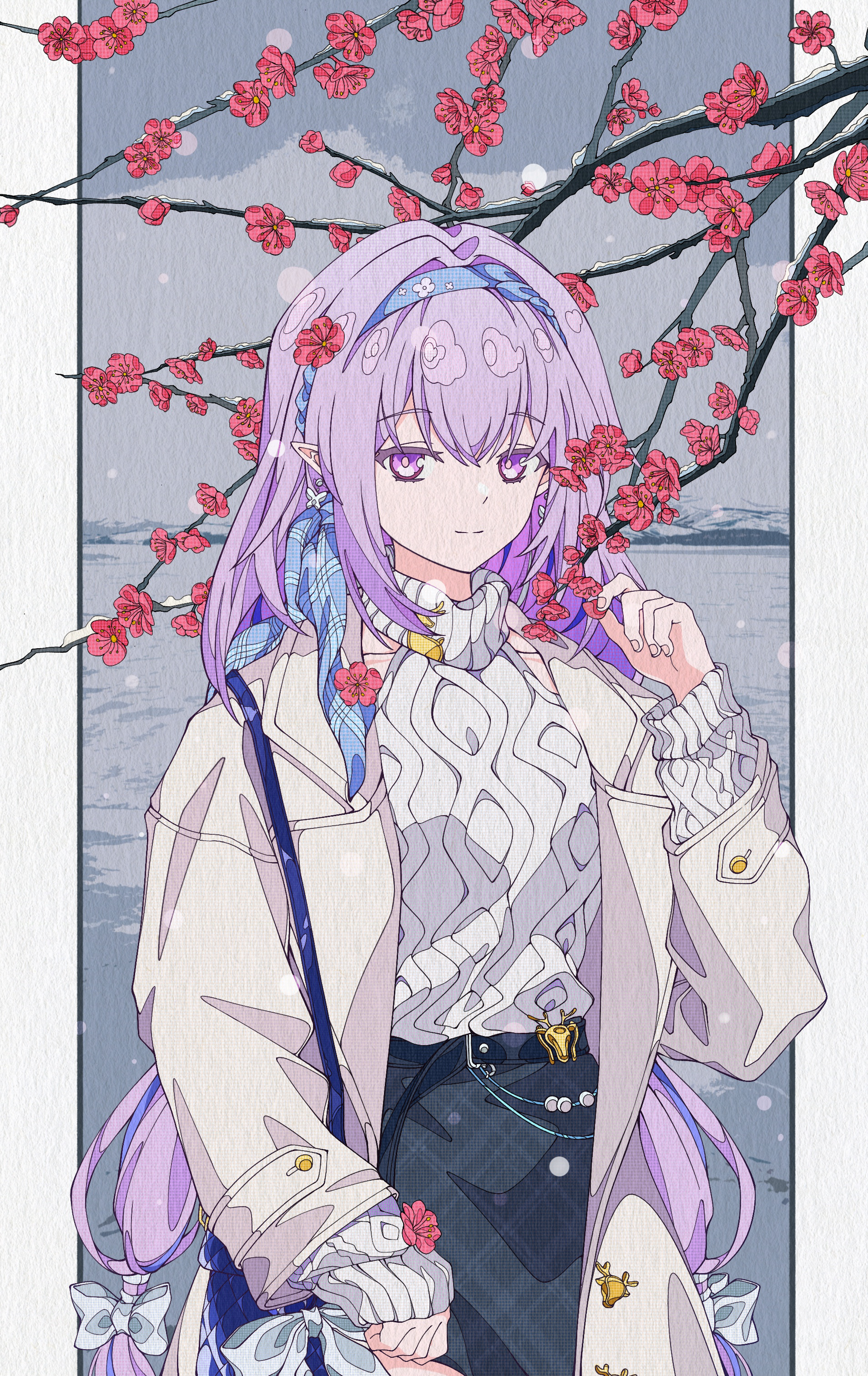 sonozaki shion, higurashi no naku koro ni, 00s, 1girl, blazer, cherry blossoms, female focus, green eyes, green hair, jacket, long hair, petals, ribbon, school uniform, solo