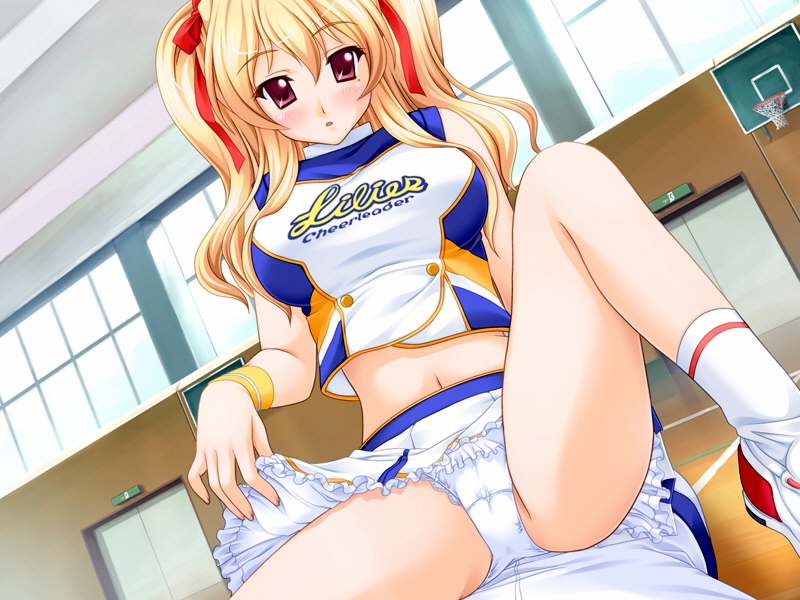:o1girlblonde hairblushbreastscheerleaderclothes liftcrop topcrop top overhangembarrassedfemale focusfrilled pantiesfrillsgirl on topgymhair ribbonlarge breastsleg uplegslifting own clotheslong hairmidriffmolemole under eyenavelon flooropen mouthpantiespink eyespovred eyesribbonschoolshirtshoessittingsitting on personskirtskirt liftsleevelesssneakerssockssolo focusspread legsstraddlingtaut clothestaut shirtturtlenecktwintailsunderwearupskirtwhite pantieswindowwristband