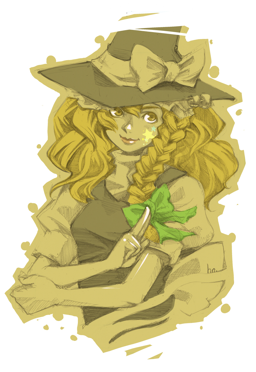 1girlblonde hairbraidfemale focushatribbonshort hairsimple backgroundsketchsolostar (symbol)upper bodywhite backgroundyellow eyes