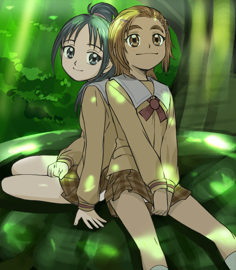 ebata risa, ozma lee, ranka lee, saotome alto, sheryl nome, vf-25, macross, macross frontier, absurdres, highres, scan, 00s, 2boys, 2girls, ahoge, gloves, mecha, multiple boys, multiple girls, robot, school uniform, serafuku