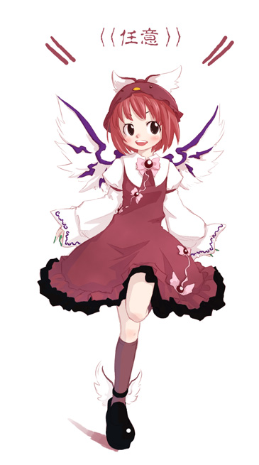 1girlfemale focusfingernailsfull bodyhatkneehighslong fingernailsred hairshort hairsimple backgroundsockssolostandingstanding on one legwinged hatwings