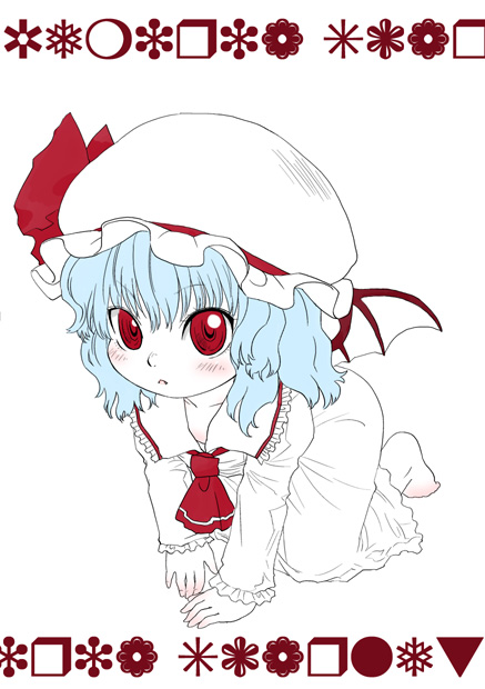 1girlbarefootbat wingsblue hairchildfemale focushatmonochromered eyesribbonshort hairsolospot colorvampirewings
