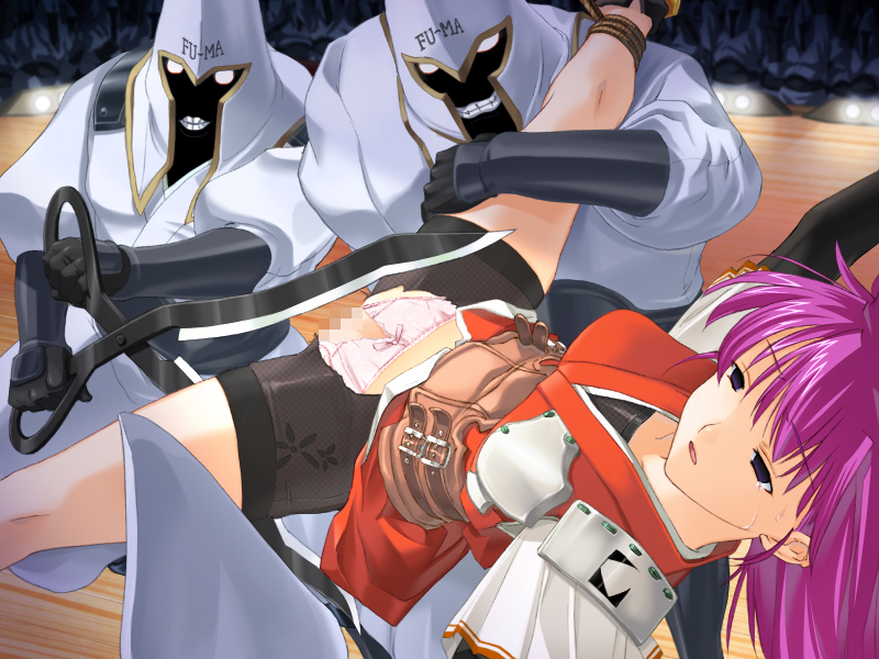 1girlbike shortsbowbow pantiescensoredempty eyesmosaic censoringpantiespink pantiespurple hairscissorsspread legstearstorn clothesunderwearyou gonna get raped