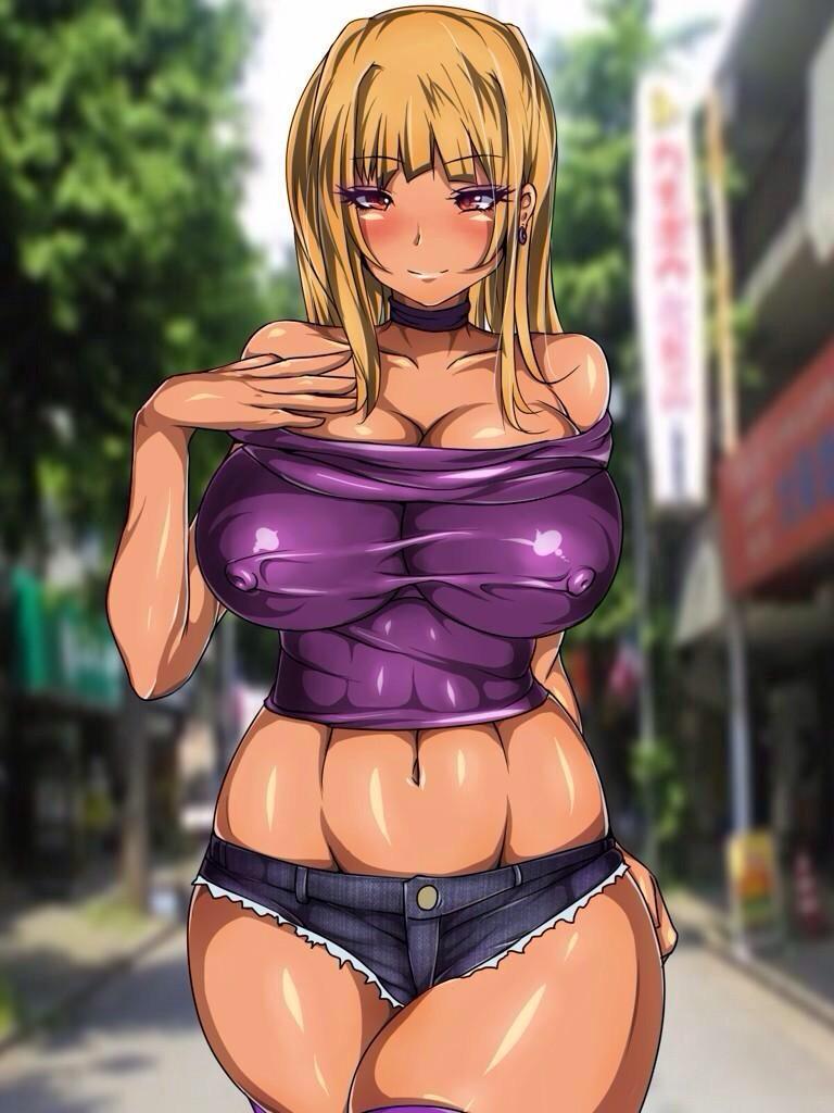 bare shouldersblonde hairblushbreastsbrown eyescurvyerect nipplesfemaleFlag for Deletionlarge breastslong hairlooking at viewermidriffnavelpuffy nipplesshiny skinsmilesolothick thighsthighswide hips