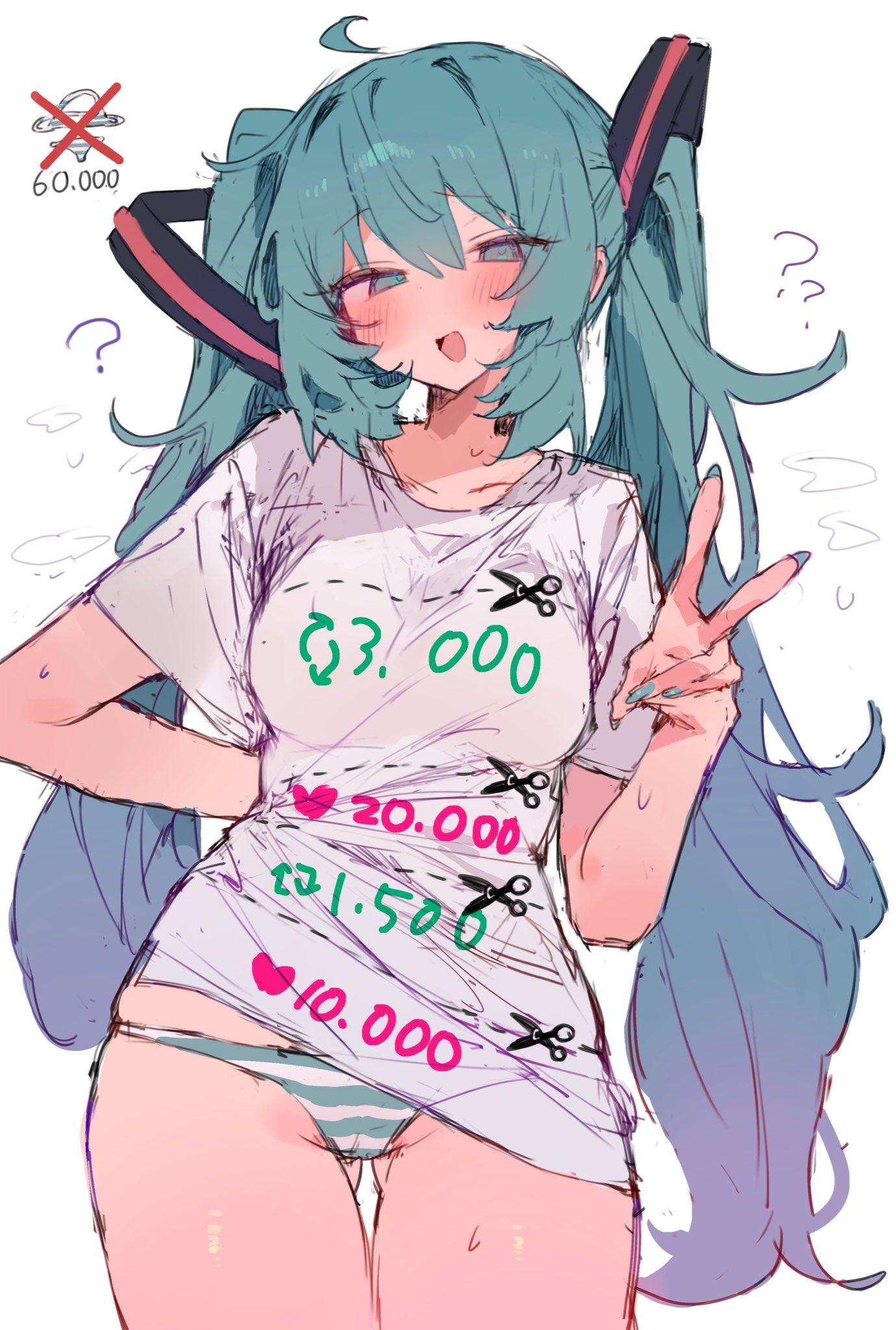1boy1girlahogearm behind backblue eyesblue hairblue nailsblue pantiesblushbreastsclothes writingcowboy shotdouble-parted bangsfingernailsgluteal foldhair between eyeshand uplong hairlooking at viewermedium breastsnail polishno pantsopen mouthpantiesshirtshort sleevessimple backgroundsmilesolostriped clothesstriped pantiessweatt-shirtthighstwintailstwitter cutting gameunderwearvvery long hairwhite backgroundwhite shirt