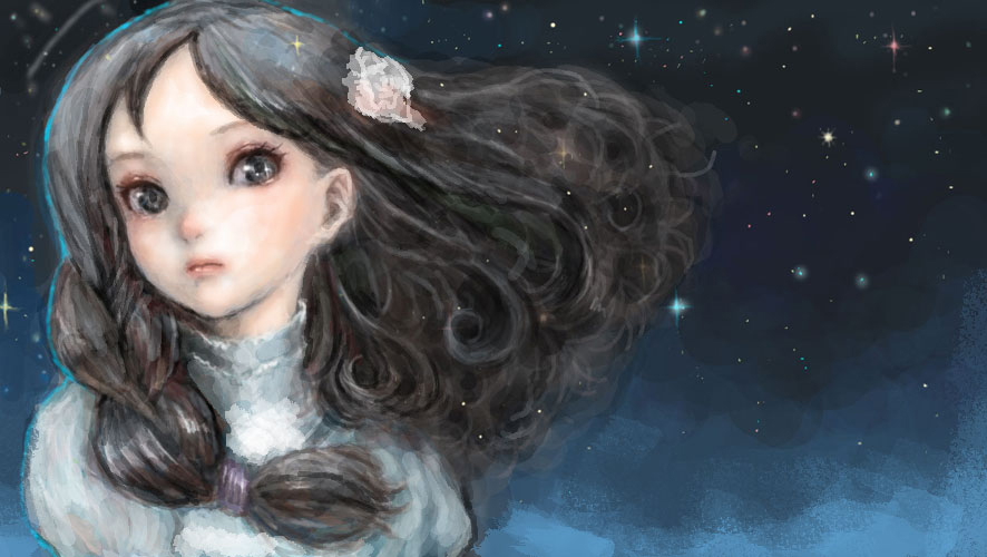 1girlblack eyesblack hairfemale focuslong hairnightskysolostar (sky)star (symbol)starry skywind