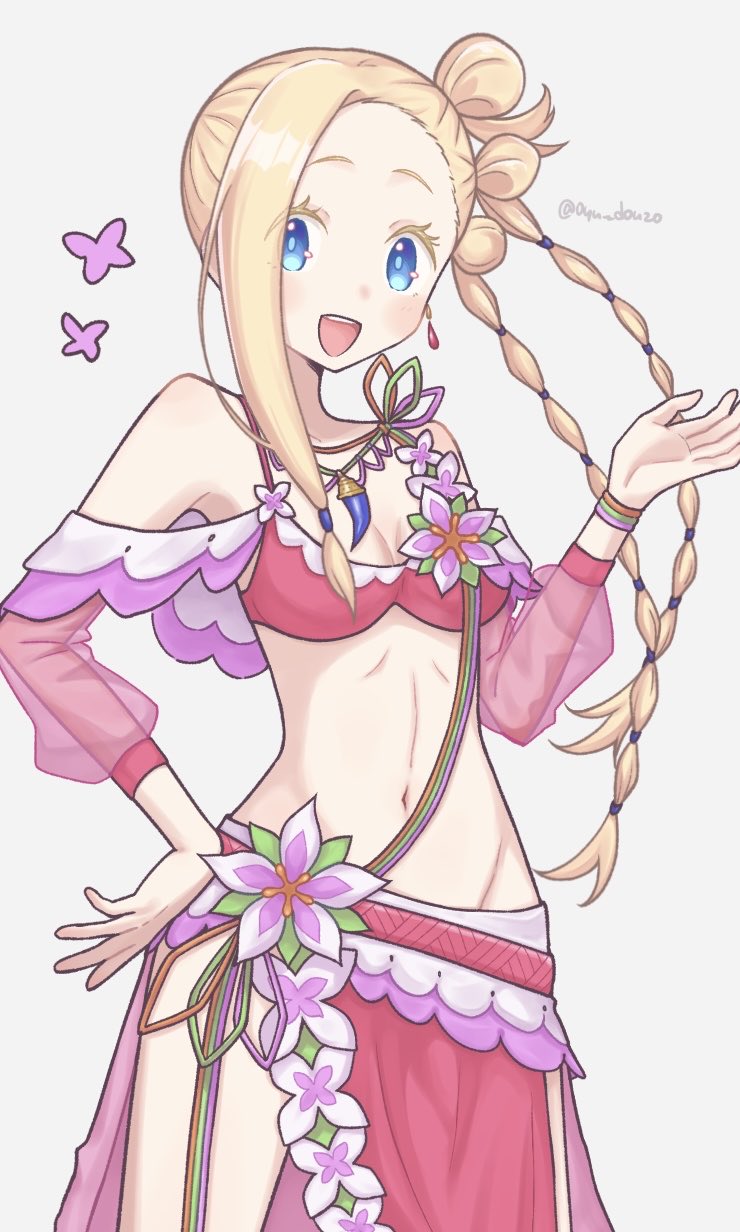 misumi uika, togawa sakiko, bang dream!, bang dream! it's mygo!!!!!, commentary request, korean commentary, 2girls, blonde hair, blue hair, blush, hair ribbon, happy123000, long hair, medium hair, multiple girls, open mouth, pajamas, purple eyes, purple shirt, ribbon, shirt, sidelocks, simple background, white background, yellow eyes