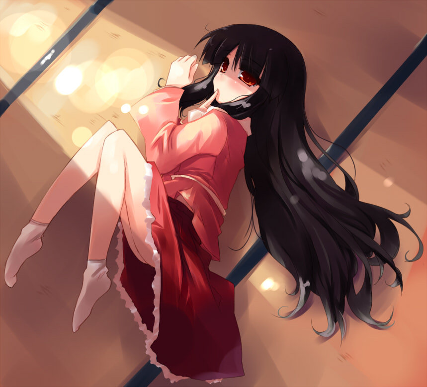 furude rika, higurashi no naku koro ni, tsumihoroboshi-hen, 00s, 1girl, black skirt, blue hair, copyright name, female focus, from behind, looking back, red eyes, school uniform, shirt, short sleeves, skirt, solo, suspender skirt, suspenders, white shirt
