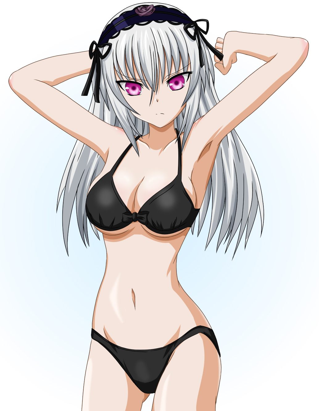 00s1girlarmpitsarms upbikiniblack bikinibreastscleavagefemale focuslong hairpurple eyesred eyessoloswimsuitwhite hair