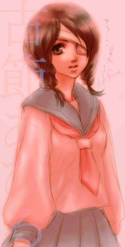 00s1girlbandage over one eyebandagesbraidbrown haireyepatchfemale focushair over shoulderschool uniformserafukushort hairsolotwin braids