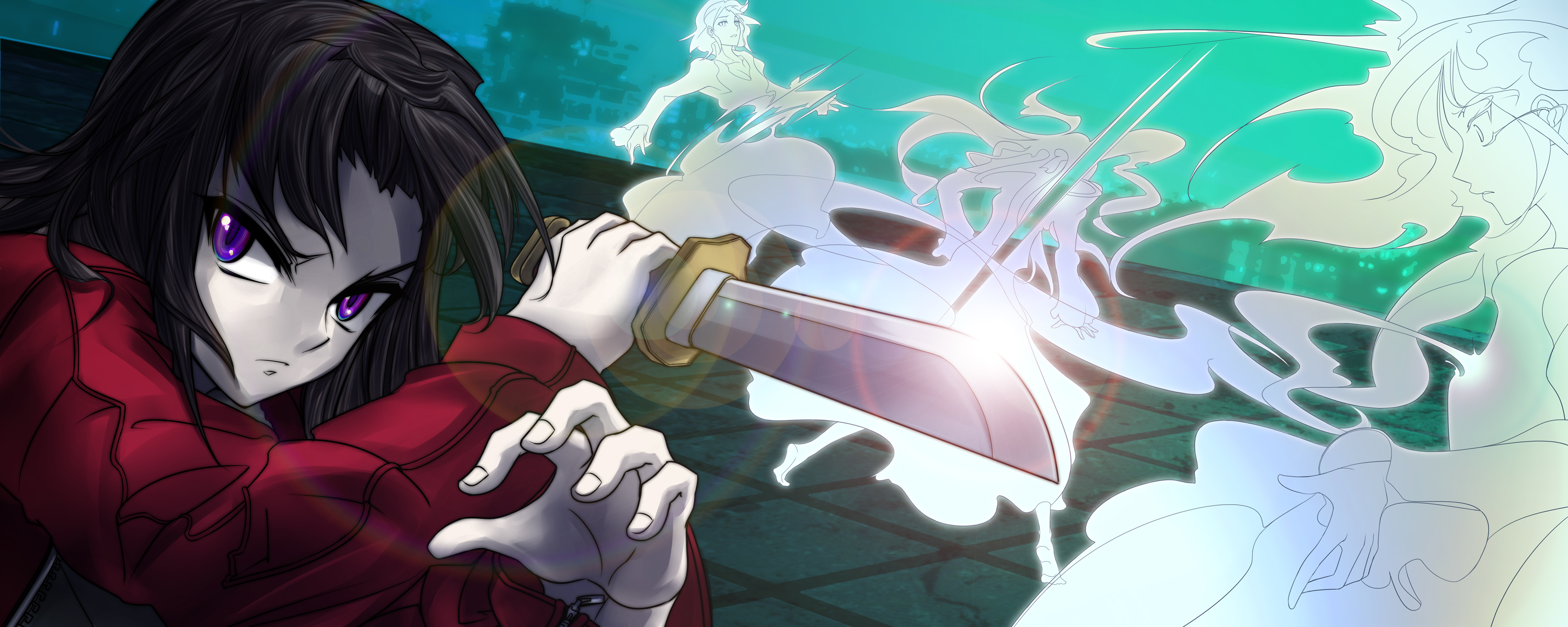 1girlblack hairbrown hairfemale focusfrownghostjacketknifeleatherleather jacketlens flarenightnight skypink eyespurple eyesred jacketreverse griprooftopshort hairskysolo