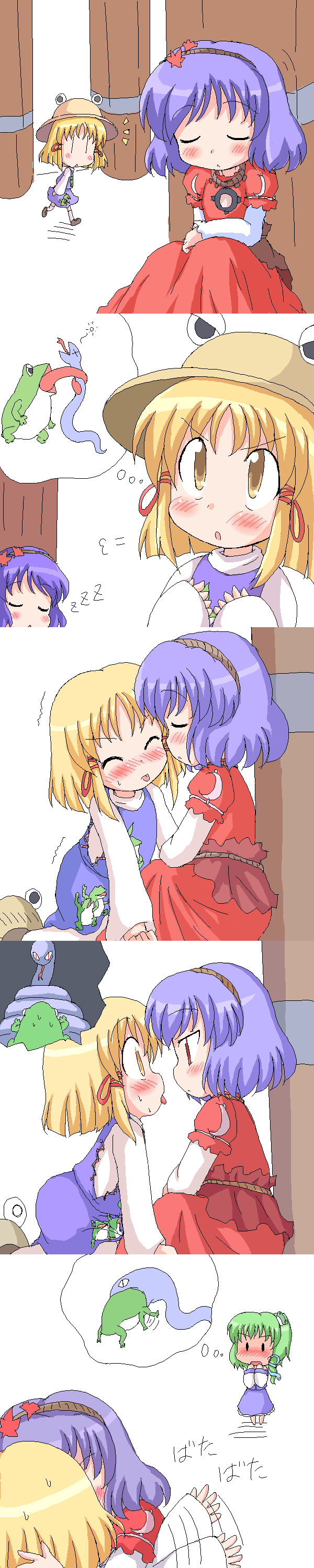 zx277x, alice thymefield, ukinami yuzuha, zenless zone zero, highres, 2girls, blonde hair, blush, long hair, multiple girls, pillow, red eyes, yuri