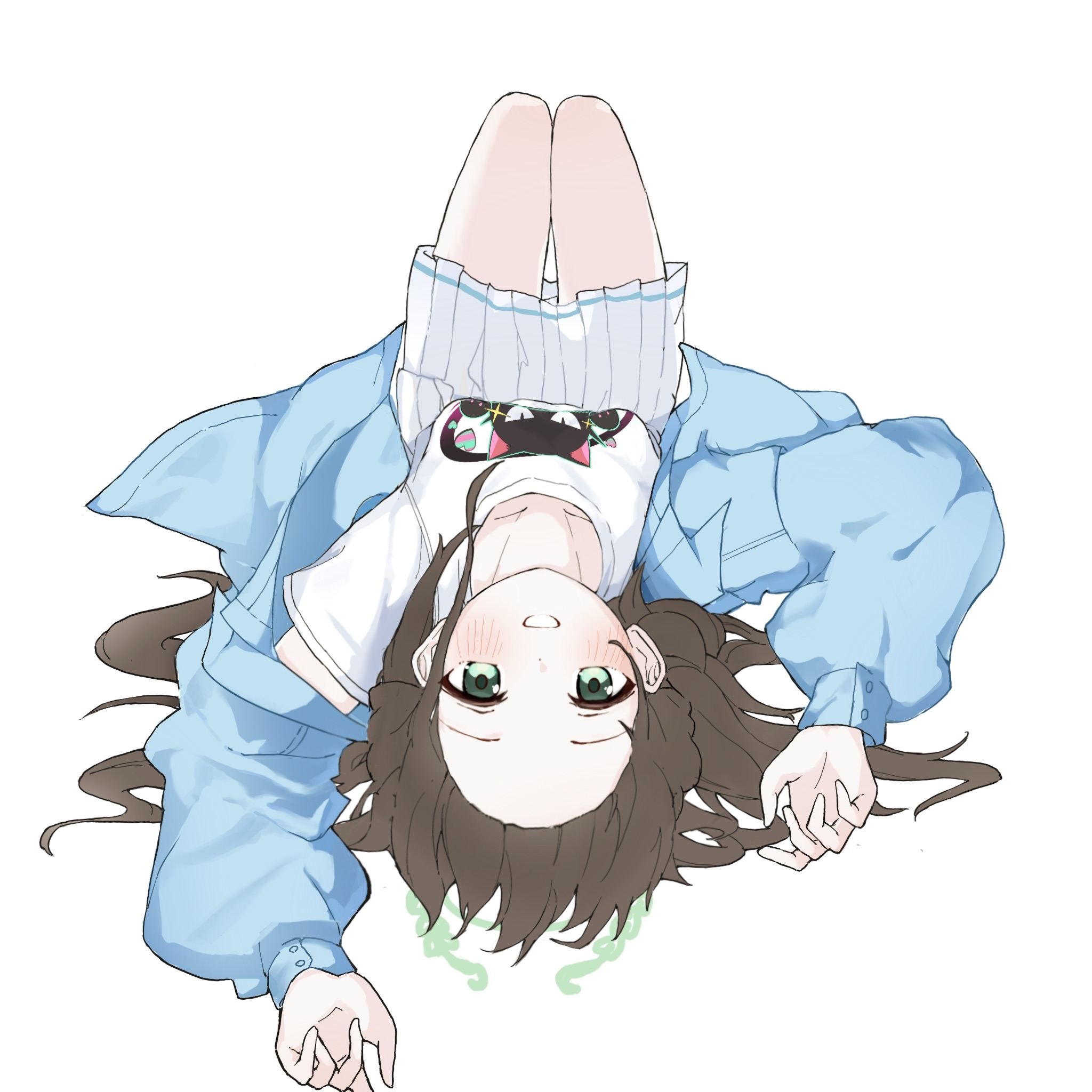 :d1girlanimal printblue jacketblushbreastsbrown haircat printcollarboneforeheadfull bodygreen eyesgreen halogrinhair spread outhalohappyjacketknees uplong hairlong sleeveslooking at viewerlyingmedium breastsminiskirtofficial alternate costumeon backopen clothesopen jacketopen mouthpleated skirtprint shirtshirtshort sleevessimple backgroundskirtsmilesolot-shirtupside-downwhite backgroundwhite shirtwhite skirt