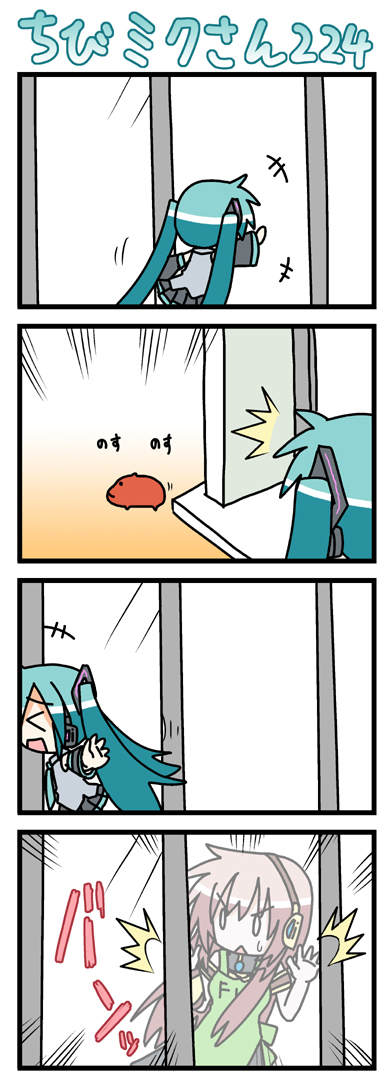0 01boy2girls4komacapybarachibiclosed eyescomicmultiple girlssilent comicsurprisedtriangle mouthtwintailswaving