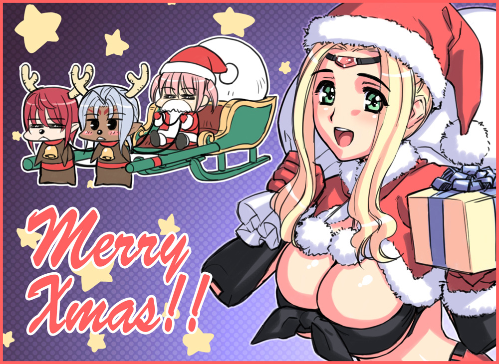 amane sou, primula, shuffle!, highres, 00s, 1girl, black thighhighs, blush, elf, female focus, long hair, magic circle, moon, pointy ears, solo, thighhighs, twintails