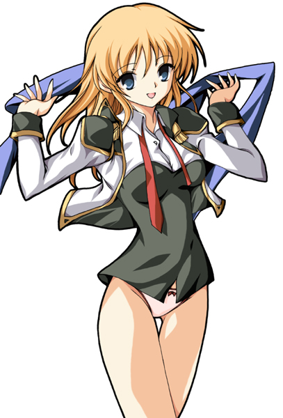 00s1girlblonde hairblue eyesfemale focuslong hairlooking at viewerorange hairpantiessimple backgroundskirtsolounderwearunworn skirtwhite background