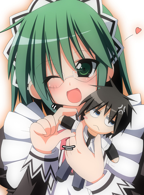 00s1girlcharacter dolldollfemale focusglassesgreen eyesgreen hairmaidmatching hair/eyesone eye closedsolowink