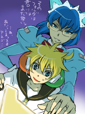 imizu (nitro unknown), evangeline a.k. mcdowell, kagurazaka asuna, miyazaki nodoka, tatsumiya mana, mahou sensei negima!, 00s, 4girls, ahoge, assault rifle, bell, blonde hair, blue eyes, cover, cover page, desert eagle, gun, hair bell, hair ornament, handgun, heterochromia, long hair, m4 carbine, multiple girls, pistol, red eyes, rifle, weapon