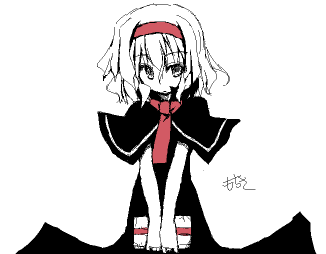 1girlfemale focushairbandmonochromeoekakiribbonshort hairsimple backgroundsolospot colorstandingwhite background