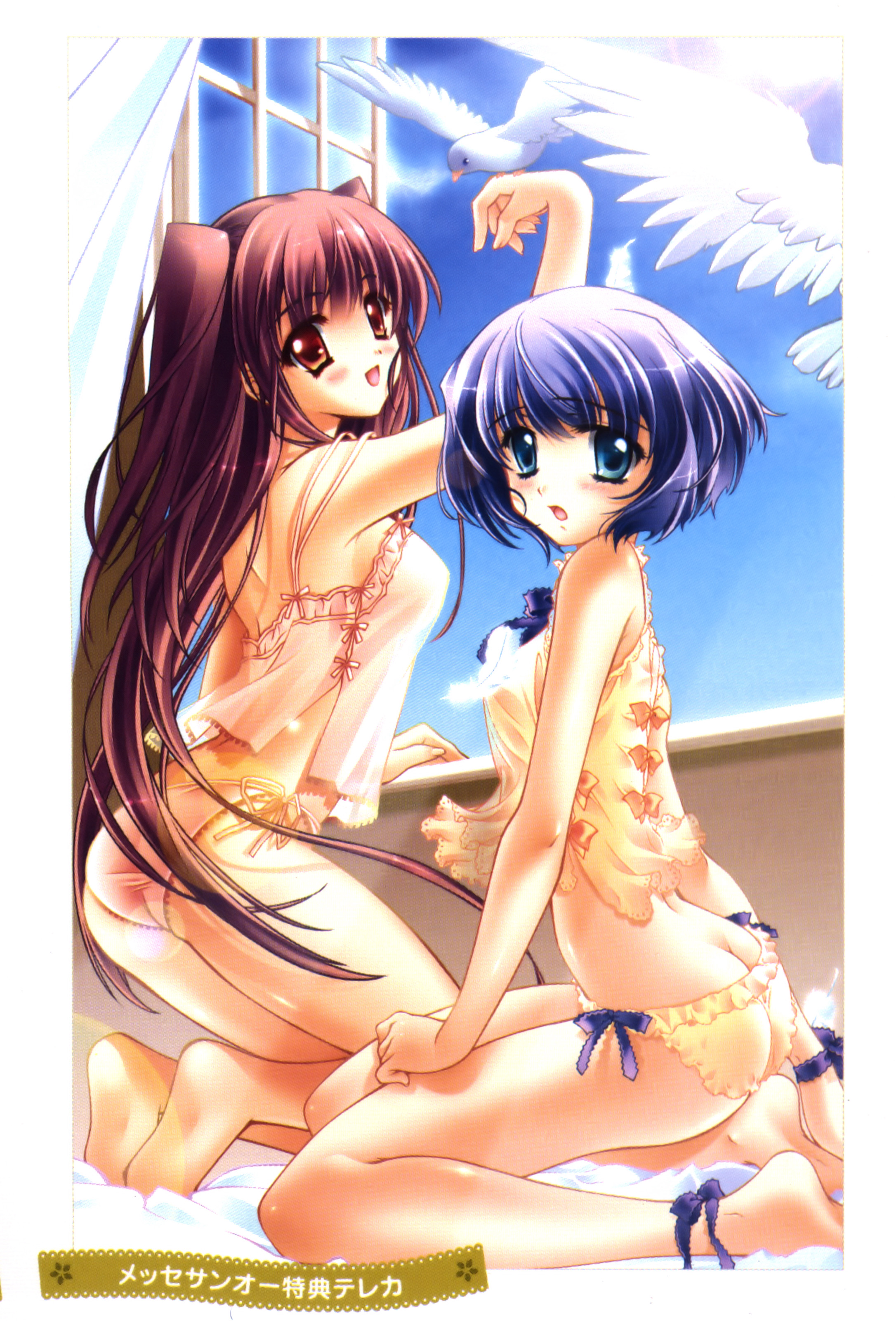 carnelian, kamiazuma touka, touka gettan, 00s, 1boy, 1girl, 2005, :o, black pants, black shirt, breasts, cleavage, full body, japanese clothes, large breasts, logo, long sleeves, looking at viewer, pants, parted lips, red eyes, shirt, sitting, upper body, watermark, white hair
