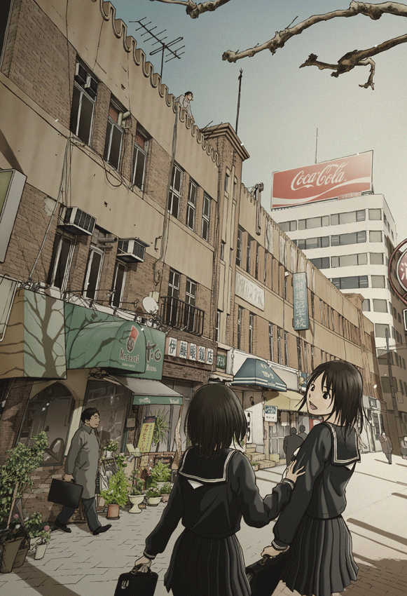 2girlsautumnblack hairbrown eyesmultiple girlsproduct placementschool uniformserafukuslice of life