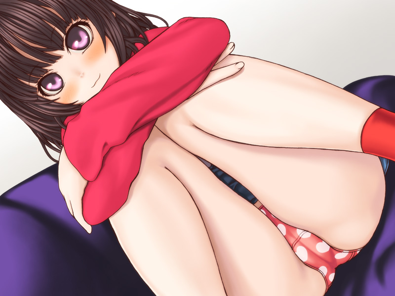 1girlblushbrown haircameltoefemale focuslong hairlooking at viewerno pantspantiespink eyessockssolounderwear