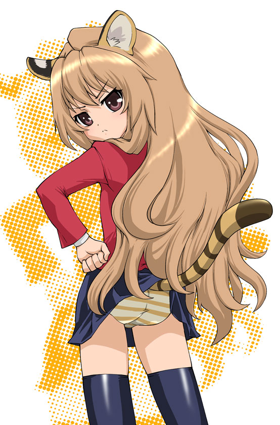 00sanimal earsassblack thighhighsbrown eyesbrown haircat earscat taillolilong hairlooking backpantiespoutschool uniformskirtsolostriped clothesstriped pantiestailthighhighstigertiger earstiger tailunderwearzettai ryouiki