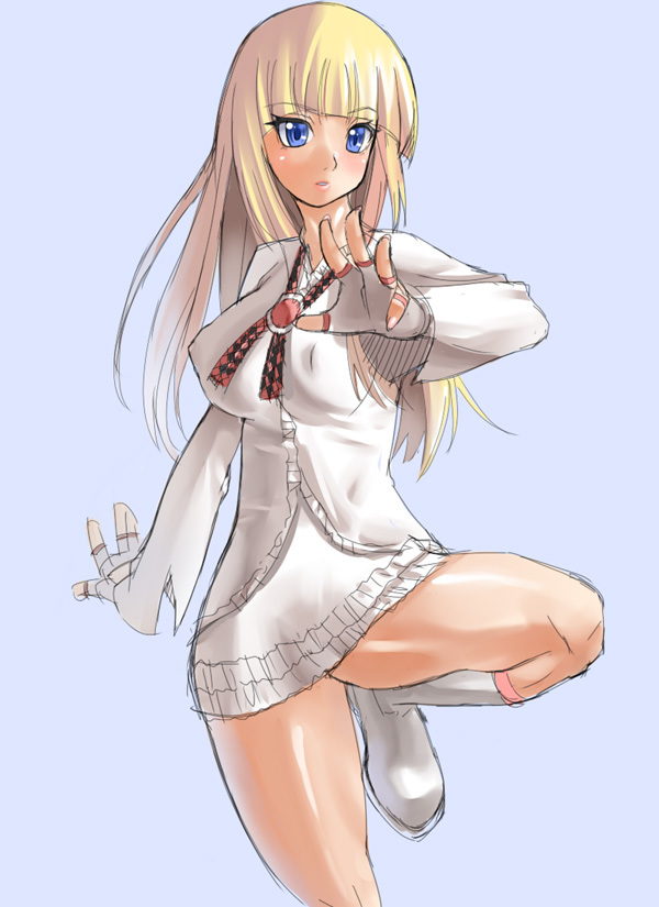 ueyama michirou, suzumiya haruhi, suzumiya haruhi no yuuutsu, translation request, 00s, 1girl, brown hair, female focus, hair ribbon, indoors, ribbon, school uniform, serafuku, short hair, shouting, skirt, solo, spread legs, standing, white background, yellow eyes