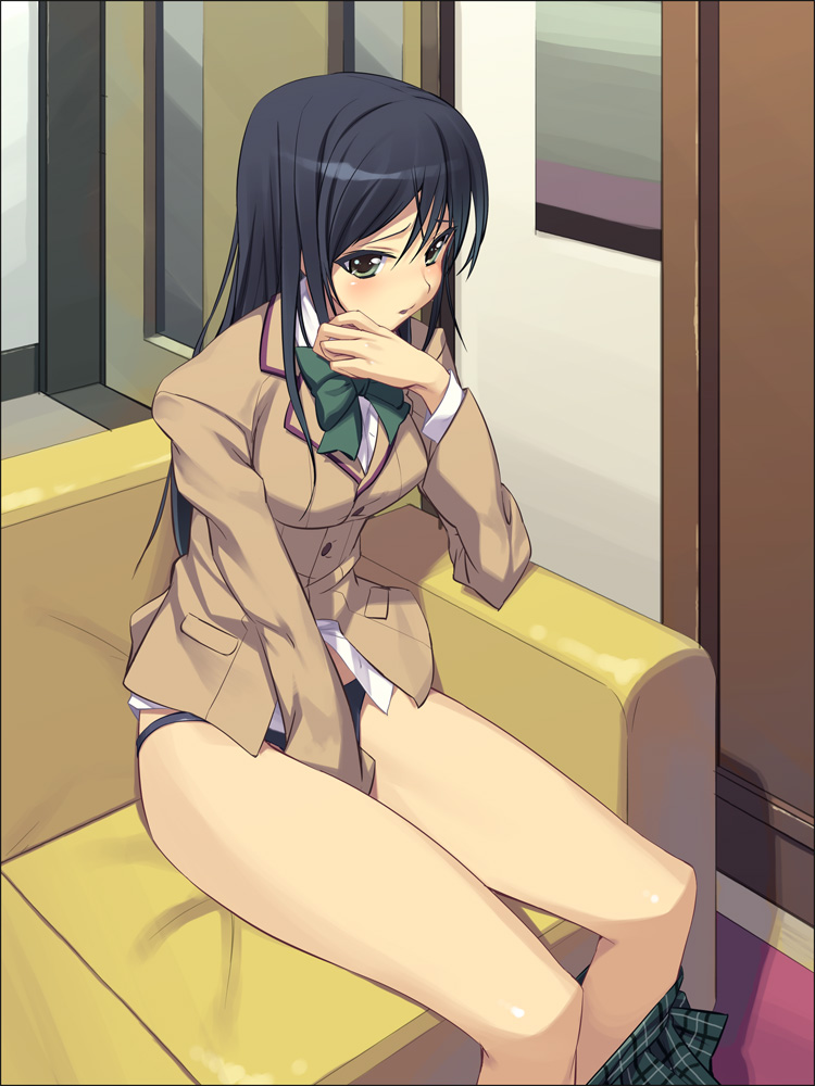 tsuji santa, garnet (sumaga), nitroplus, sumaga, game cg, 1girl, antenna hair, bed, blue hair, blush, breasts, breasts out, brown eyes, cameltoe, classroom, dutch angle, female focus, glasses, large breasts, long hair, looking at viewer, lying, nipples, on back, on bed, open clothes, open mouth, open shirt, panties, pantyshot, pillow, school, shirt, skirt, solo, teacher, thighs, thong, underwear, upskirt, white panties
