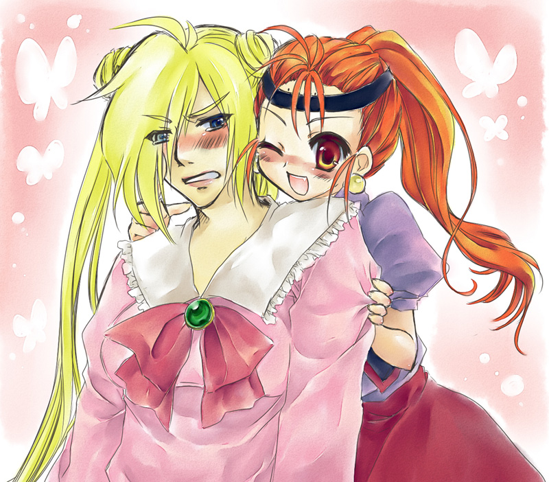 king (snk), vice (kof), ryuuko no ken, snk, the king of fighters, bad id, bad pixiv id, md5 mismatch, 2girls, androgynous, chibi, food, multiple girls, pantyhose, reverse trap