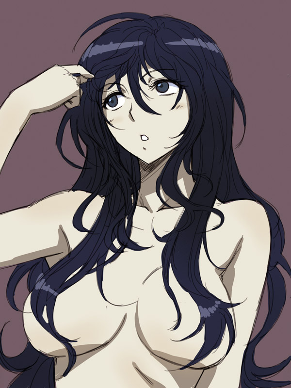 1girlblue eyesblue hairbreastscensoredconvenient censoringfemale focushair between eyeshair censorhair over breastslarge breastslong hairmatching hair/eyessimple backgroundsolotopless female