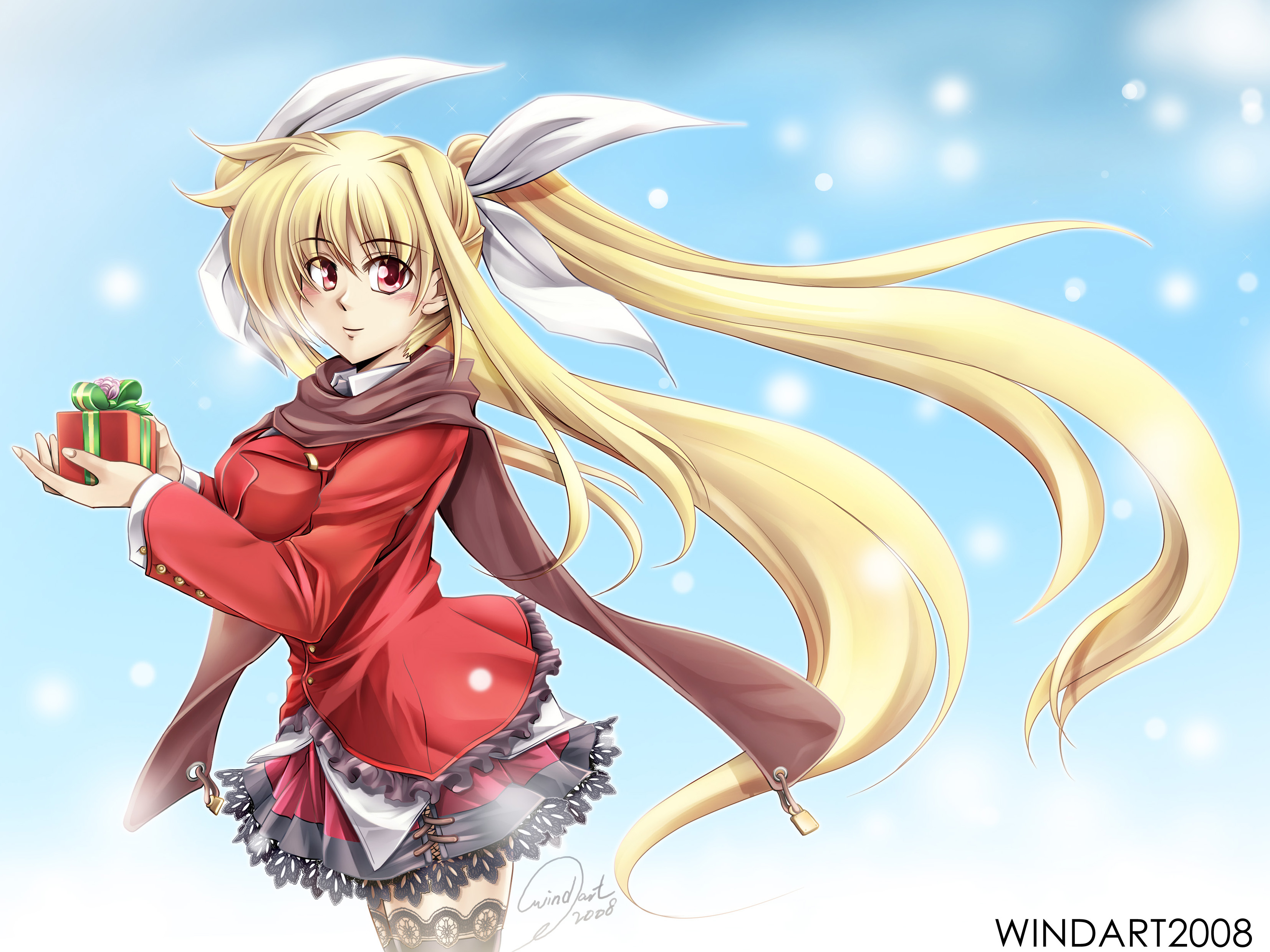 00s1girlblonde hairblushchristmasfemale focusgifthair ribbonholdingholding giftlong hairred eyesribbonscarfskirtsnowsolothighhighstwintailsvery long hairzettai ryouiki