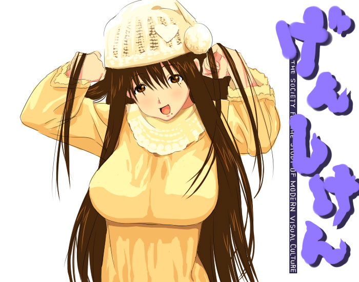 00sbeaniebreastsbrown eyesbrown hairhatlarge breastslong hairmolemole under eyeopen mouthsmilesolosweatervery long hair