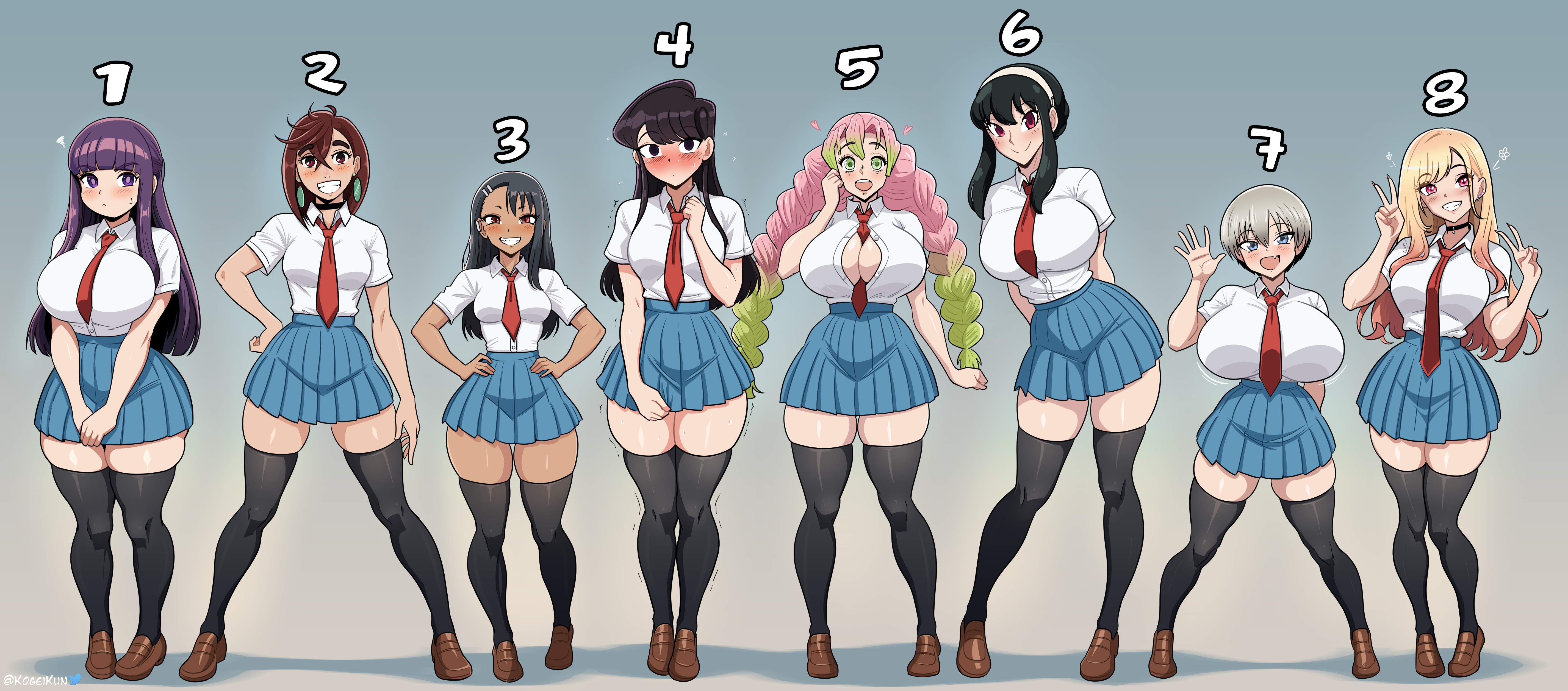 6+girlsarms behind backbetween breastsblack eyesblack hairblack thighhighsblonde hairblue eyesblue skirtblunt bangsblushbob cutbreastsbrown eyesbrown hairbrown shoesdark skindark-skinned femaledouble vgreen eyesgreen hairgrey hairhair ornamenthairbandhaircliphand on own cheekhand on own facehand on own hiphand uphands on own hipshuge breastslarge breastslong hairlooking at viewermedium breastsmedium hairmultiple girlsnecktienumberedopen mouthown hands togetherparted lipspartially unbuttonedpear-shaped figurepink hairpleated skirtpurple eyespurple hairred eyesred necktieschool uniformshadowshirtshirt tucked inshoesshort hairshort sleevessidelocksskirtsmilesweatdropthick thighsthighhighsthighsvwavingwhite hairbandwhite shirtzettai ryouiki