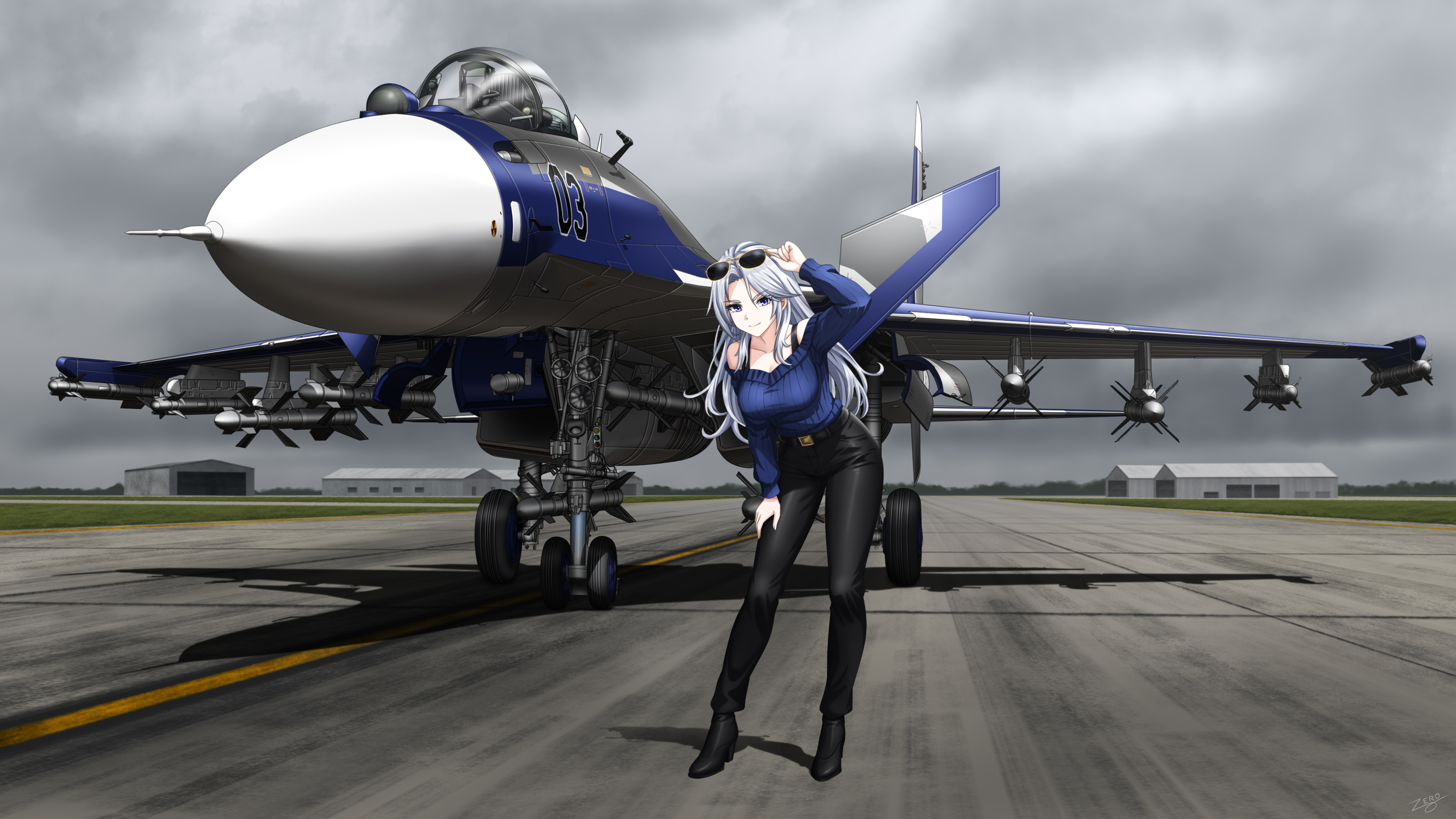 1girlair-to-air missileaircraftaircraft hangerairplanearm upbeltbelt bucklebent overblack beltblack bootsblack pantsblue eyesblue hairblue sweaterbootsbreastsbucklecanardscanopy (aircraft)closed mouthcloudcloudy skycockpitcollarbonedayfighter jetforestfull bodygrassgrey skyhigh heel bootshigh heelslanding gearlarge breastsleatherleather pantslong hairlong sleevesmilitarymilitary vehiclemissilenatureoff shoulderoff-shoulder sweateroutdoorspantsr-27 vympelr-73 vympelrunwayshadowsidelocksskysmilesolospaghetti strapstandingsunglassessweatervehicle focusweaponyellow-framed eyewear