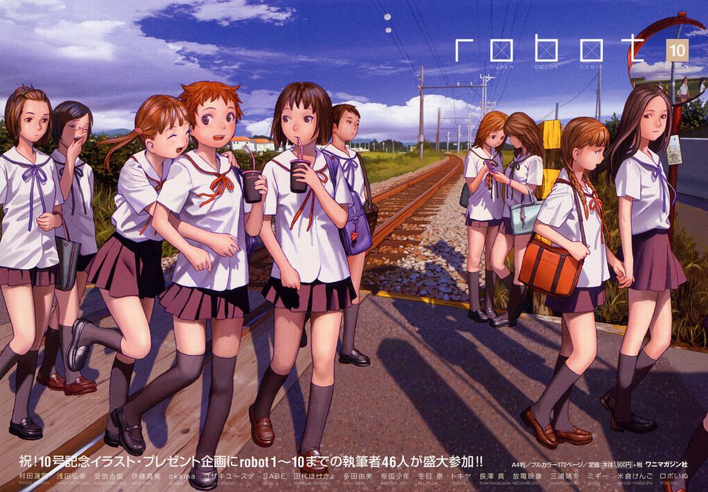 6+girlsbagblack hairbreastsbrown haircellphoneclouddayfemale focusflat chestlong hairmultiple girlsphonerailroad crossingrailroad tracksred hairschool uniformshort hairskirtskysmall breaststhighhighstraffic mirrortwintails